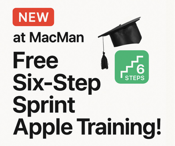 We’re excited to roll out Six-Step Sprint, a new series of free classes at MacMan. Each session is designed to help you get more out of the Apple apps already built into your Mac—simple, practical, and easy to follow.